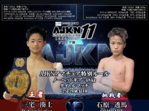 森岡はAKC2024全国大会王者も経験しAJKNアマチュア3階級王者で、4階級制覇を目指す。